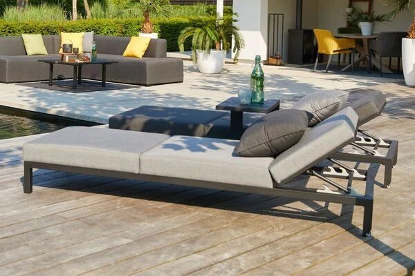 Gartenliege „Adam“ aus Aluminium/Sunbrella in mid grey/schwarz von Hartman